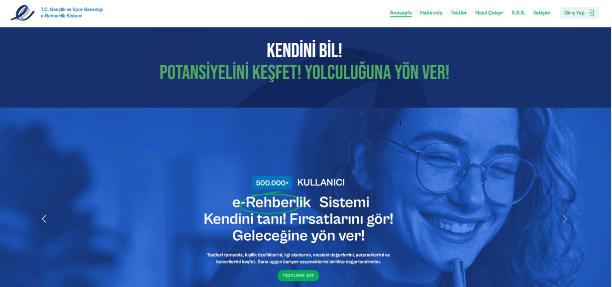 T.C. Gençlik ve Spor Bakanlığı tarafından sunulan e-Rehberlik Sistemi ile kariyer planlamanızı ve eğitim hedeflerinizi artık dijital ortamda kolayca yönetebilirsiniz.